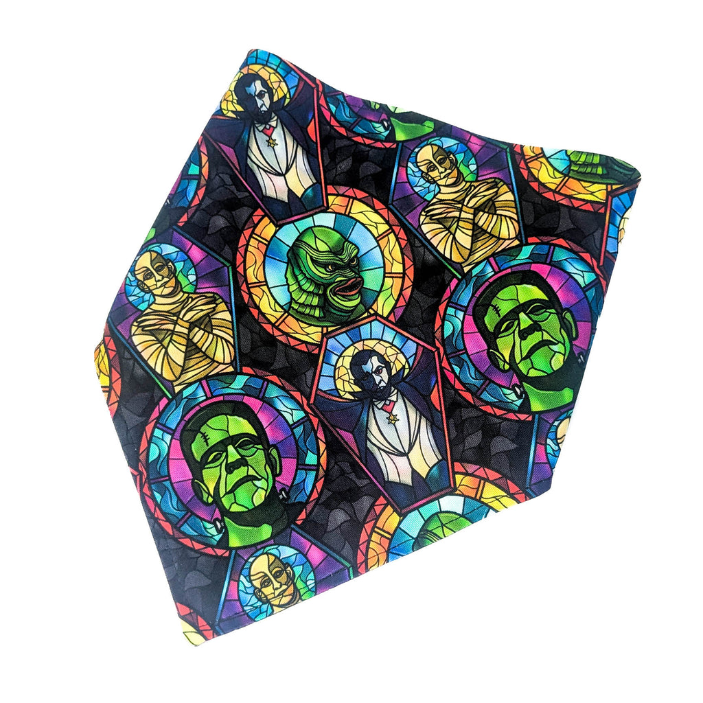 It's a monster mash in stained glass. Show off your geeky pride around the neck of your favorite animal!